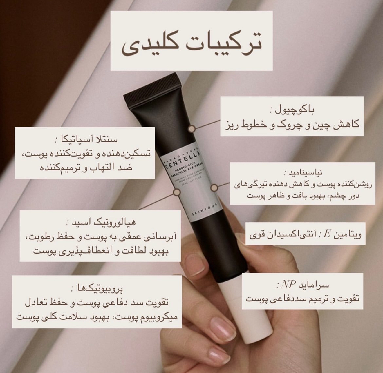 یکی از محصولات برجسته برای مراقبت از ناحیه حساس دور چشم است. این کرم با ترکیبات طبیعی و فرمولاسیون پیشرفته خود، به بهبود ظاهر و سلامت پوست دور چشم کمک می کند. این کرم دور چشم می تواند به کاهش پف های زیر چشم کمک کند. این کرم حاوی نیاسینامید است که به کاهش تیرگی و پف دور چشم کمک می کند. همچنین، ترکیبات تسکین دهنده و ضدالتهاب مانند سنتلا آسیاتیکا به آرامش و کاهش التهاب پوست کمک می کنند.