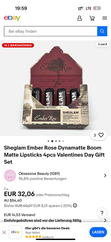 رژ لبهای مات شیگلم امبر رز داینامات بوم، ست هدیه ۴ عددی روز ولنتاین