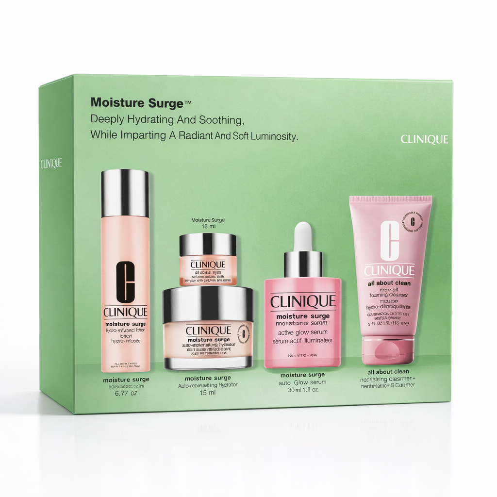 یک مجموعه تخصصی از لاین محبوب Moisture Surge است که با تمرکز بر آبرسانی عمیق، تسکین پوست و افزایش درخشندگی طبیعی طراحی شده است. این ست شامل: