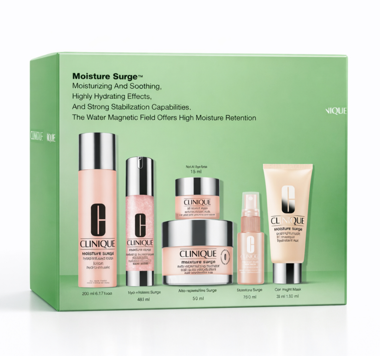 یک مجموعه کامل و حرفهای با ۶ محصول از لاین محبوب Moisture Surge برند کلینیک است که با هدف آبرسانی عمیق، تسکین پوست و تقویت سد دفاعی طراحی شده است.