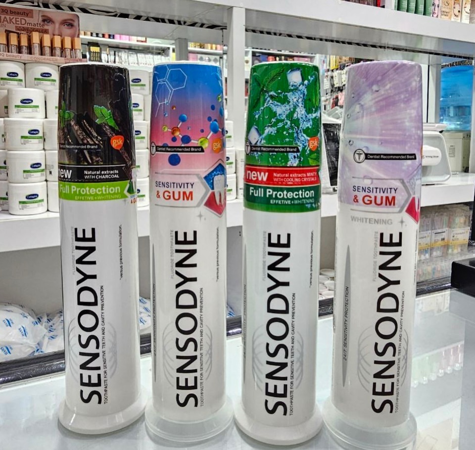 خمیر دندان سنسوداین مدل پمپی در حه صد در صد اورجینال ۴ کارایی متفاوت اصلی به شرط مرجوعی ۲ رنگ ساخت عربستان ۲ رنگ ساخت فرانسه تاریخ انقضا 2028