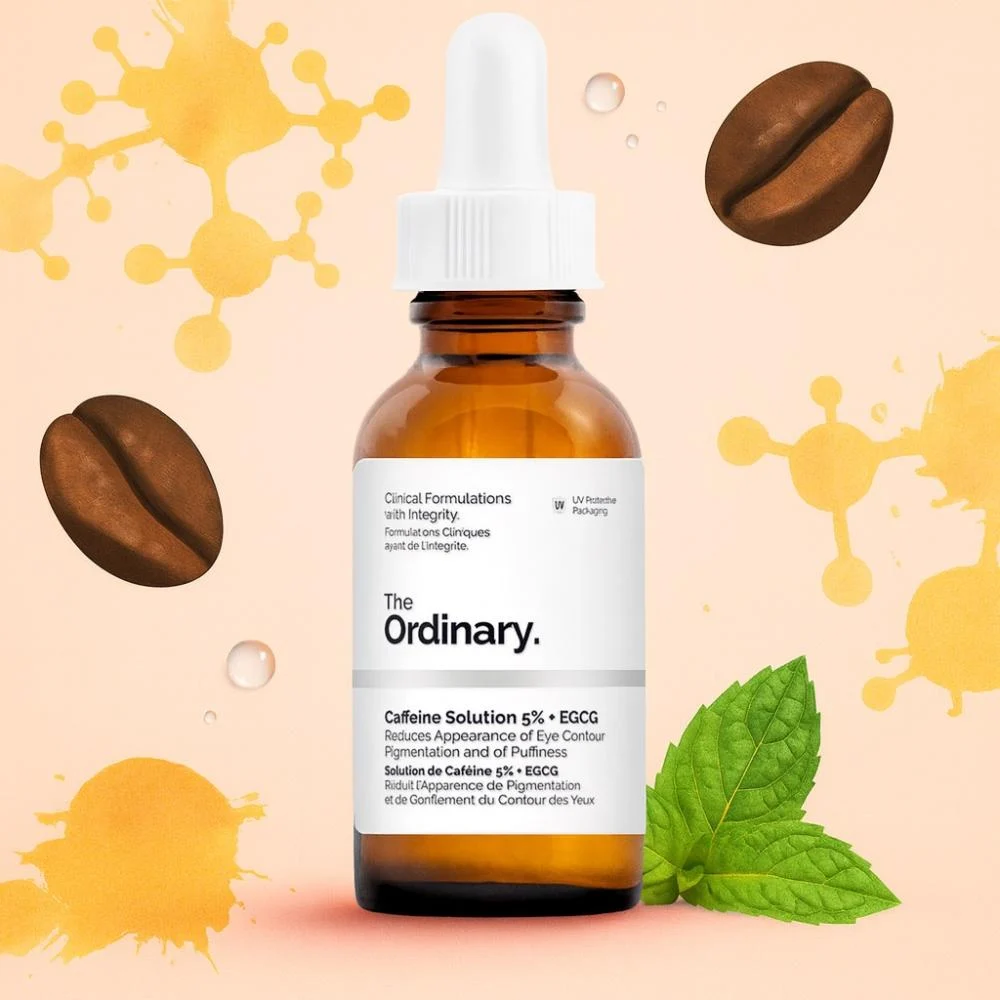 کافئین ۵%: کاهش تیرگی و پف دور چشم