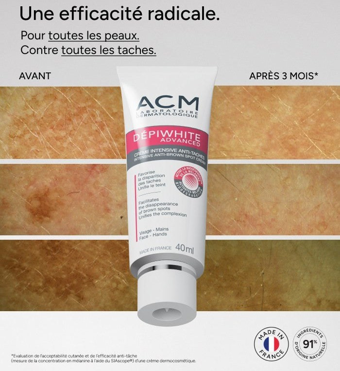 کرم ضد لک دپی وایت ای سی ام یک محصول فوقالعاده با اثربخشی سریع و موثر برای درمان لک و تیرگی روی پوست است. این محصول برای از بین بردن تیرگیهایی که در اثر نور خورشید، افزایش سن، آفتاب سوختگی، زایمان و … کاربرد دارد.